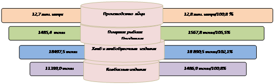 Объем отгруженной продукции на предприятиях по производству пищевых продуктов по предварительной оценке составил около 2 млрд. рублей или 100,6% к уровню прошлого года в сопоставимых ценах.