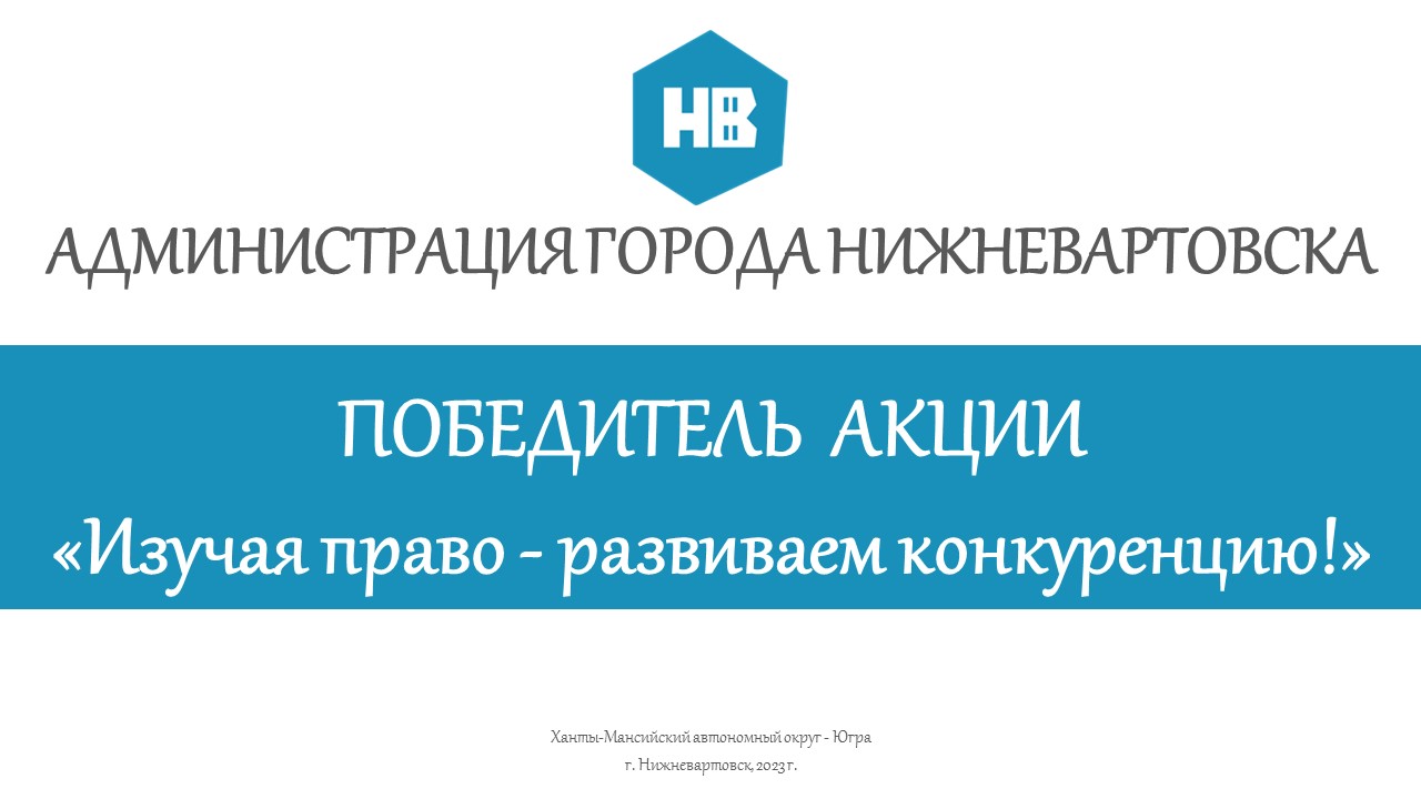 Администрация города Нижневартовска заняла первое место в окружной акции «Изучая право - развиваем конкуренцию!» среди трех муниципальных образований, принявших участие.