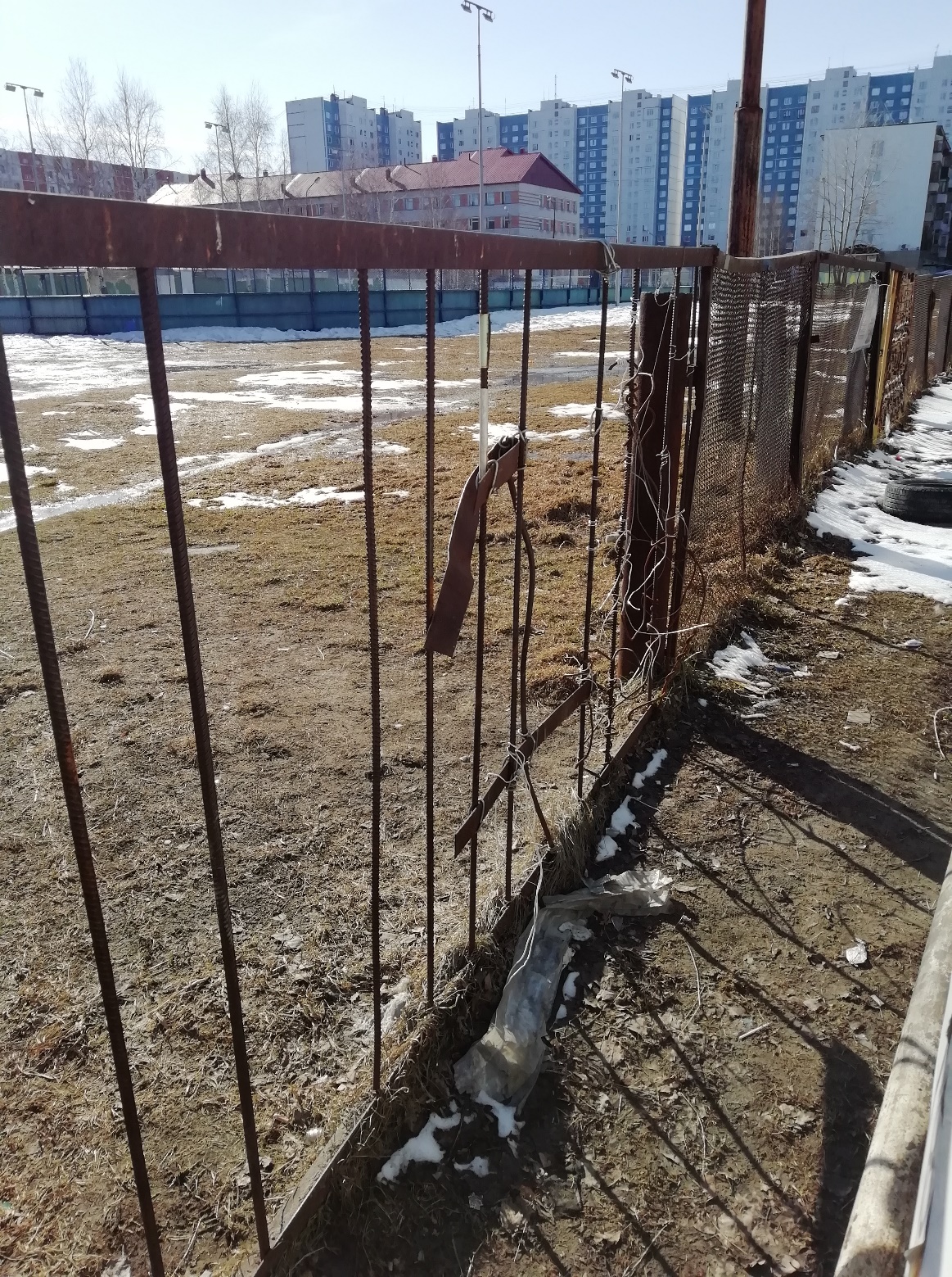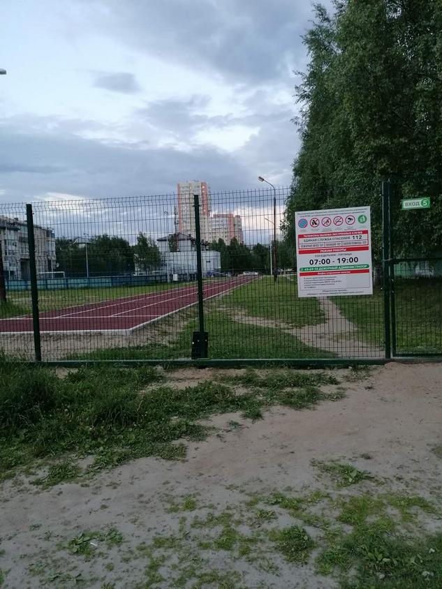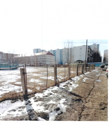 - Описание: Отсутствие места для проведения занятий физической подготовки, а именно бега. Старое поврежденное и местами восстановленное ограждение, не соответствующее ПП РФ 1130 от 30.10.2014.