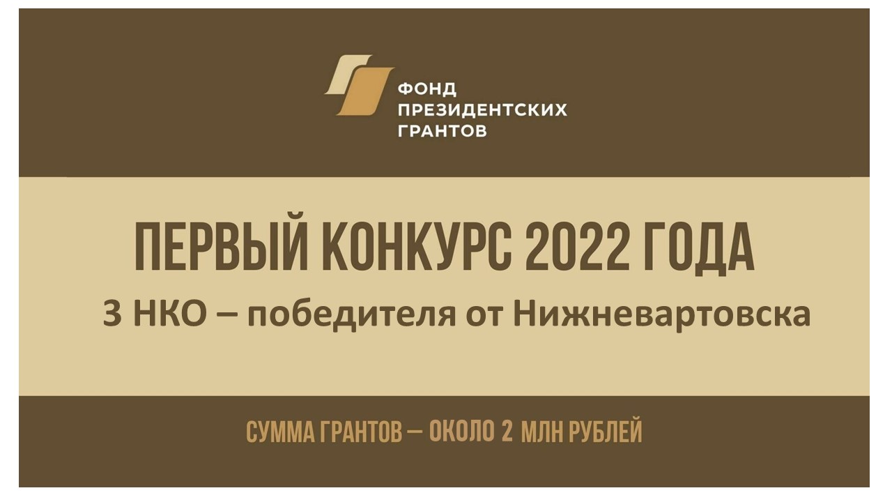 В результате участия в первом конкурсе 2022 года на предоставление грантов Президента Российской Федерации 3 НКО города Нижневартовска получать поддержку на реализацию своих проектов