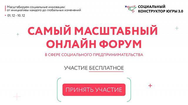 Форум «Социальный конструктор Югры 3.0» С 1 по 10 декабря 2019 года в онлайн формате пройдет Форум «Социальный конструктор Югры 3.0».