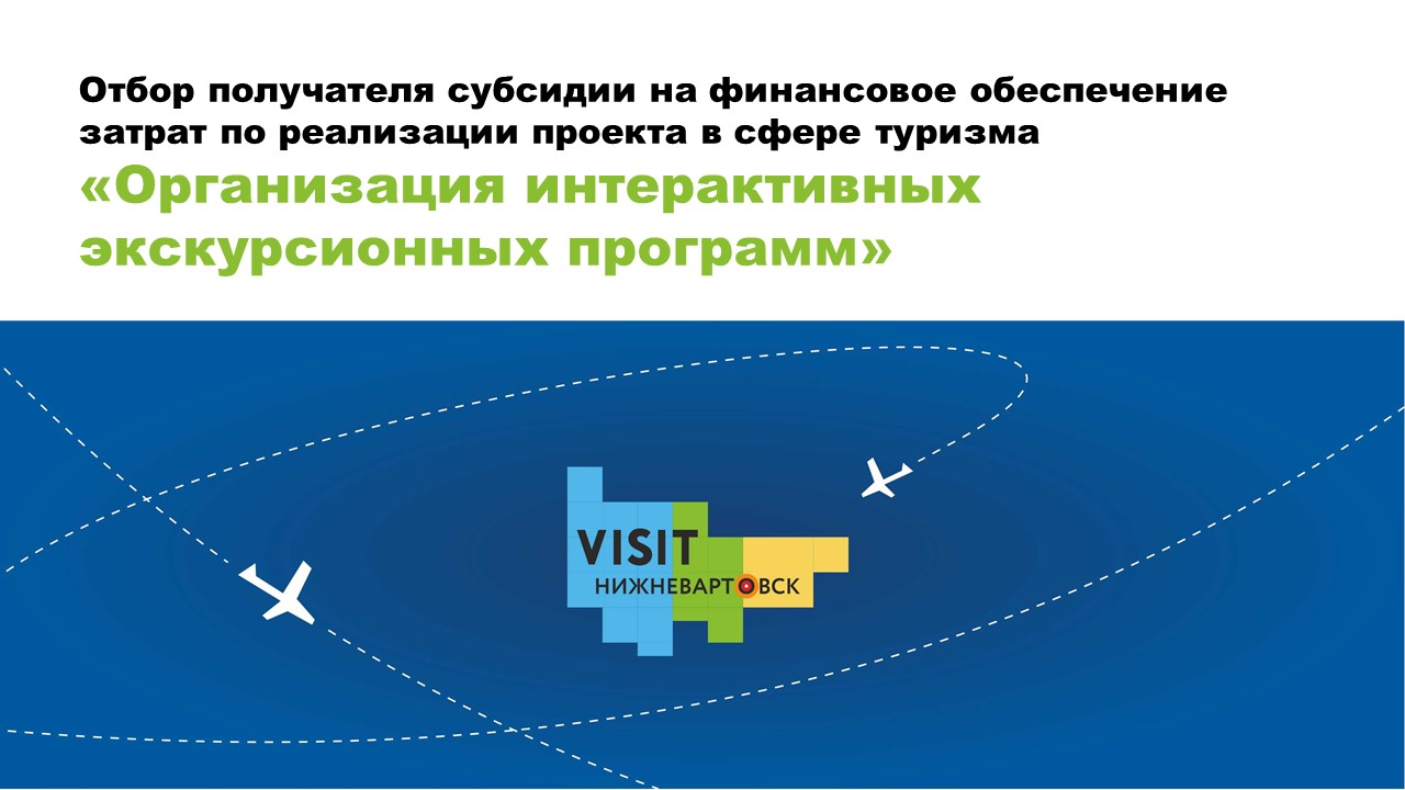 Уважаемые руководители некоммерческих организаций города Нижневартовска! Департамент по социальной политике администрации города Нижневартовска объявляет о проведении отбора получателя субсидии на финансовое обеспечение затрат по реализации проекта в сфере туризма «Организация интерактивных экскурсионных программ».