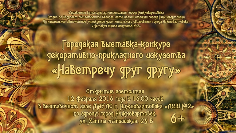 В целях создания в городе Нижневартовске творческой среды на основе культурных ценностей многонационального российского общества Детская школа искусств №2 проводит выставку - конкурс декоративно-прикладного искусства "Навстречу друг другу".
