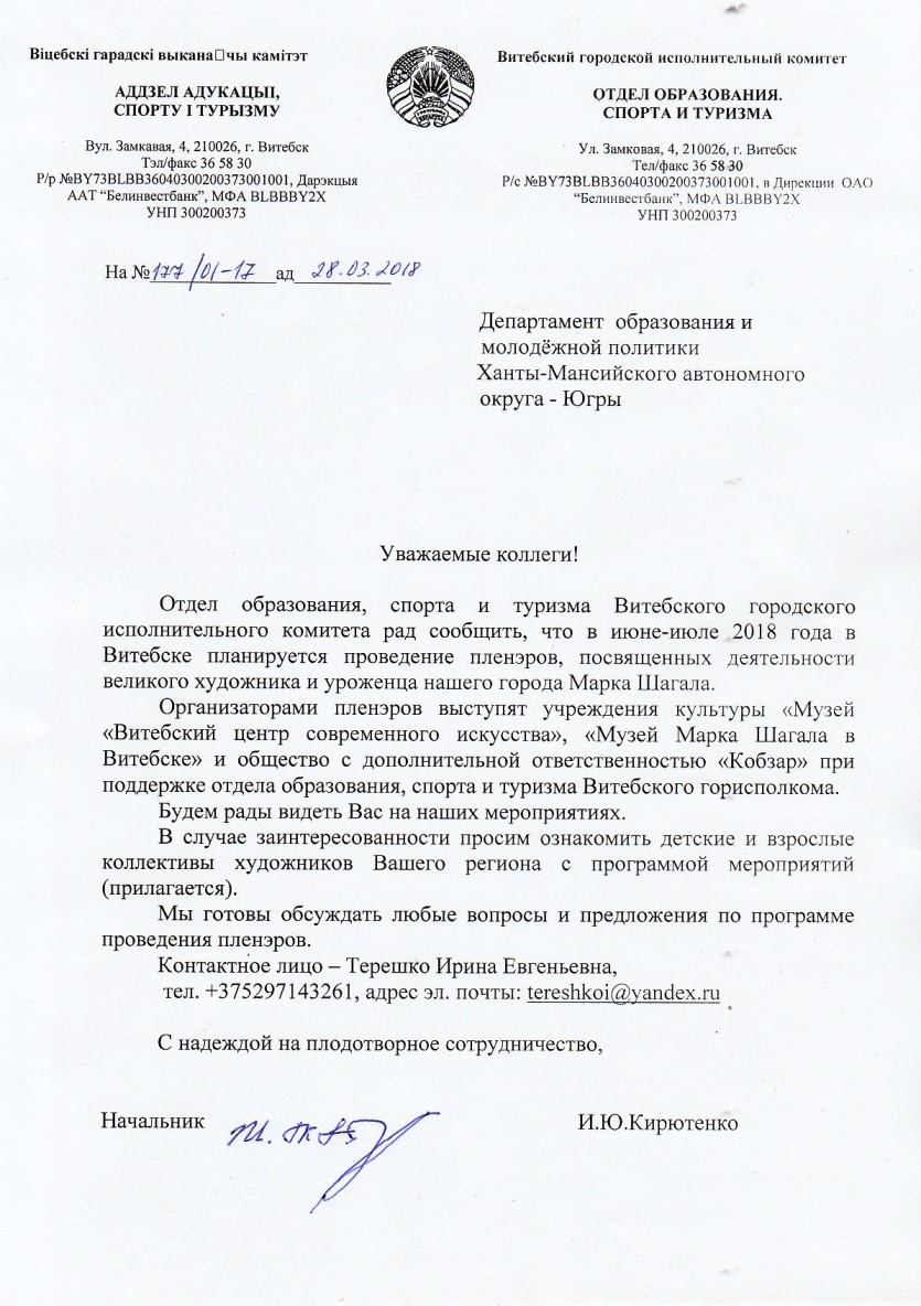 В июне-июле 2018 года в городе Витебске планируется проведение пленэров, посвященных деятельности художника Марка Шагала.