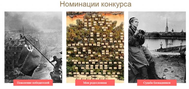 - Спецноминация (совместно с Госархивом Югры) «Судьбы блокадников Ленинграда» (приуроченная к 75-летия снятия блокады Ленинграда (27 января 1944 г.) и реализации Всероссийского специального проекта «Моя история. Моя судьба. Судьбы блокадников Ленинграда»).