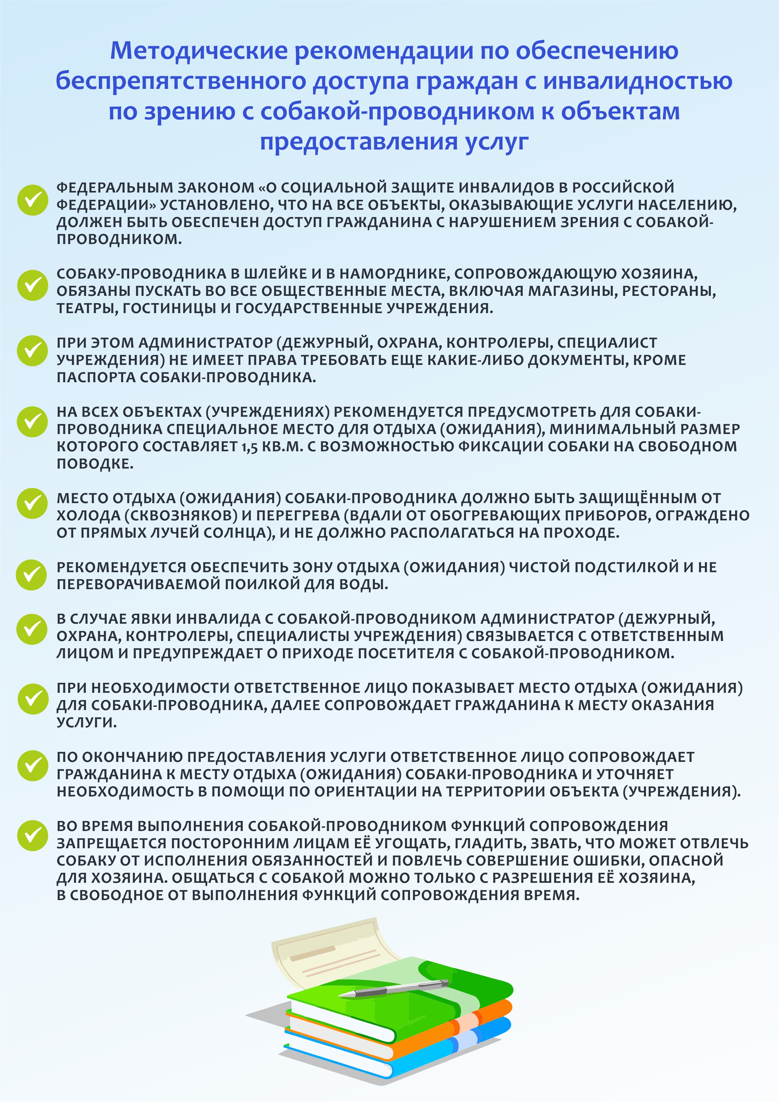 Памятка по обеспечению беспрепятственного доступа граждан с нарушением зрения с собакой -проводником к объектам предоставления услуг среди поставщиков товаров и услуг