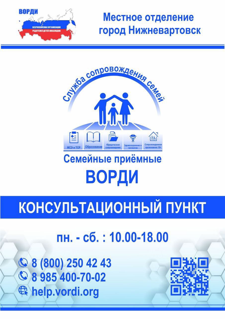 Создана Служба социального сопровождения семей с детьми-инвалидами «Семейные приемные ВОРДИ» в 2020 году. Информация об услугах ведомств в различных сферах жизни инвалида разрознена и консультации ведомств производятся только по вопросам, относящимся к их ведомственным полномочиям. Поэтому так важна помощь Семейных приемных ВОРДИ в режиме "одного окна", куда родитель может обратиться по единой на всей территории России ссылке