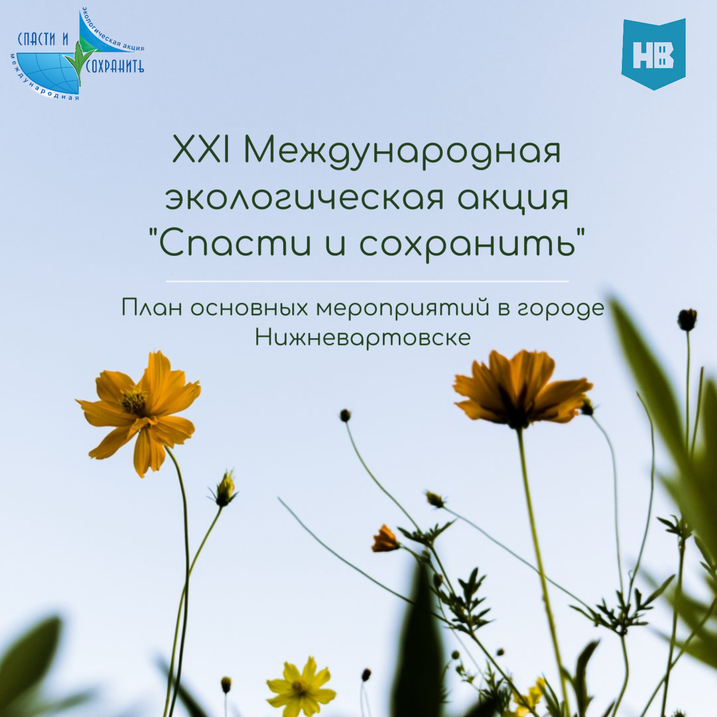 В целях формирования экологической культуры населения города Нижневартовска, управлением по природопользованию и экологии сформирован план мероприятий (во вложении), приуроченных к ХХI Международной экологической акции "Спасти и сохранить". План включает в себя 83 основных мероприятия городского и окружного уровня. Акция стартует 22 апреля 2024 года.