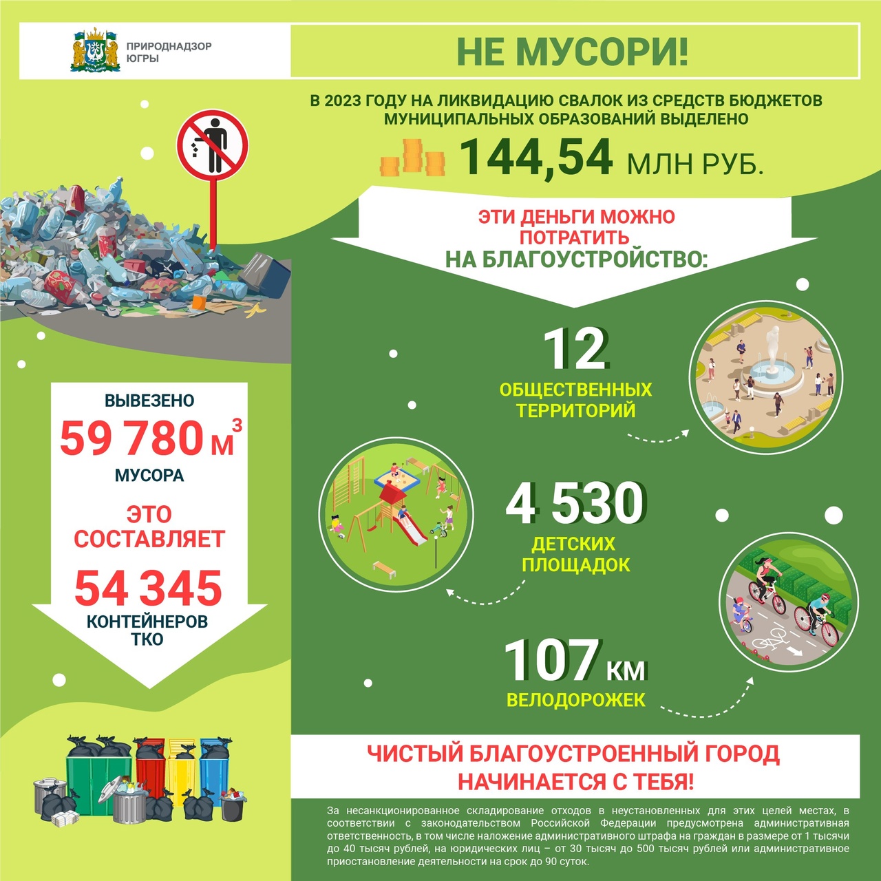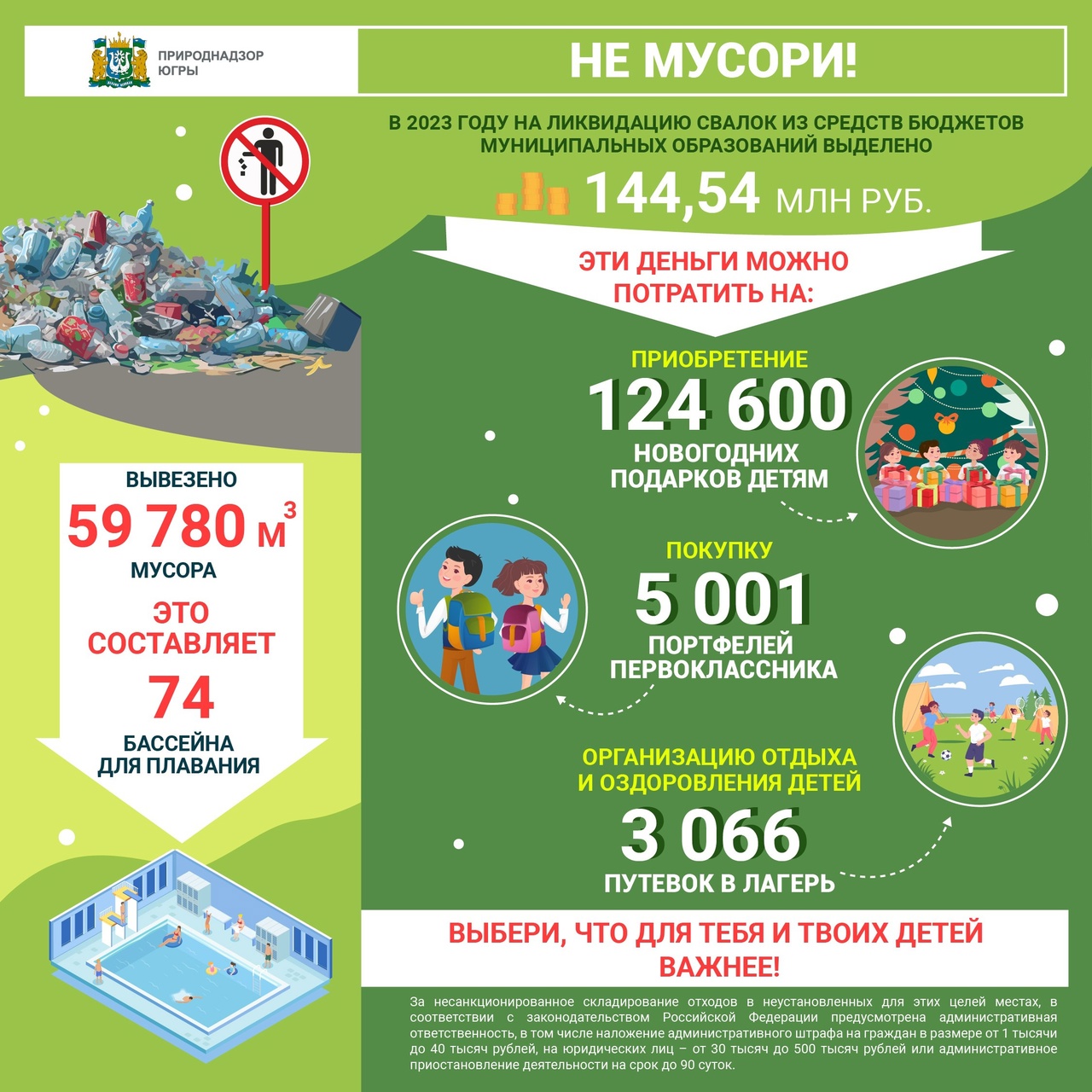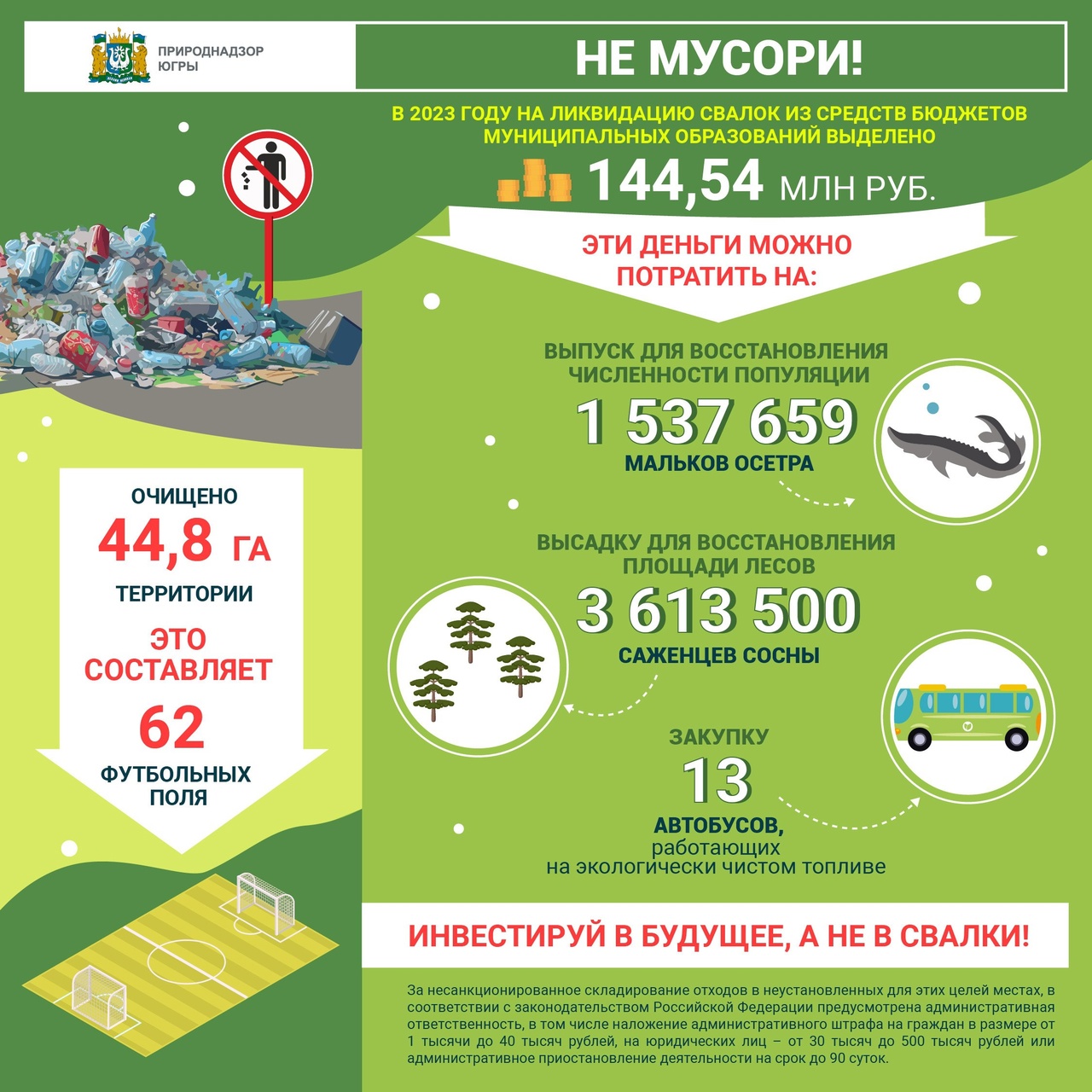 Служба по контролю и надзору в сфере охраны окружающей среды, объектов животного мира и лесных отношений Ханты-Мансийского автономного округа - Югры подготовила инфографику, которая отражает сопоставимость затрат на рекультивацию несанкционированных свалок.