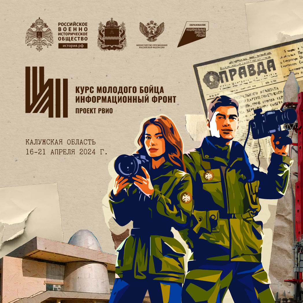 Всероссийский форум «Курс молодого бойца. Информационный фронт» – мероприятие Российского военно-исторического общества, призванное объединить молодых людей в возрасте от 18 до 35 лет, которые занимаются созданием просветительского информационного контента в сети «Интернет». В рамках форума молодых людей ожидают образовательные лекции, практикумы, мастер-классы, спортивные состязания, а также досуговая программа.