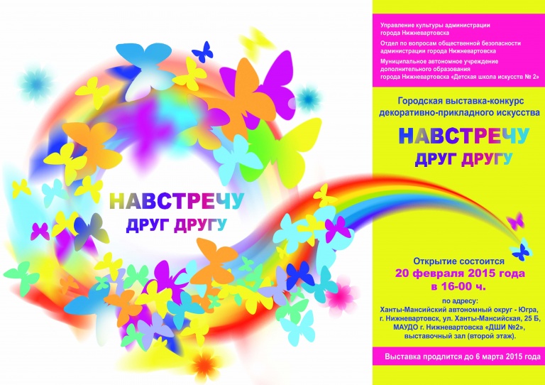 В целях создания в городе Нижневартовске творческой среды на основе культурных ценностей многонационального российского общества Детская школа искусств №2 проводит выставку - конкурс декоративно-прикладного искусства "Навстречу друг другу". Конкурс проводится в рамках муниципальной программы «Профилактика терроризма и экстремизма в городе Нижневартовске на 2015-2020 годы".