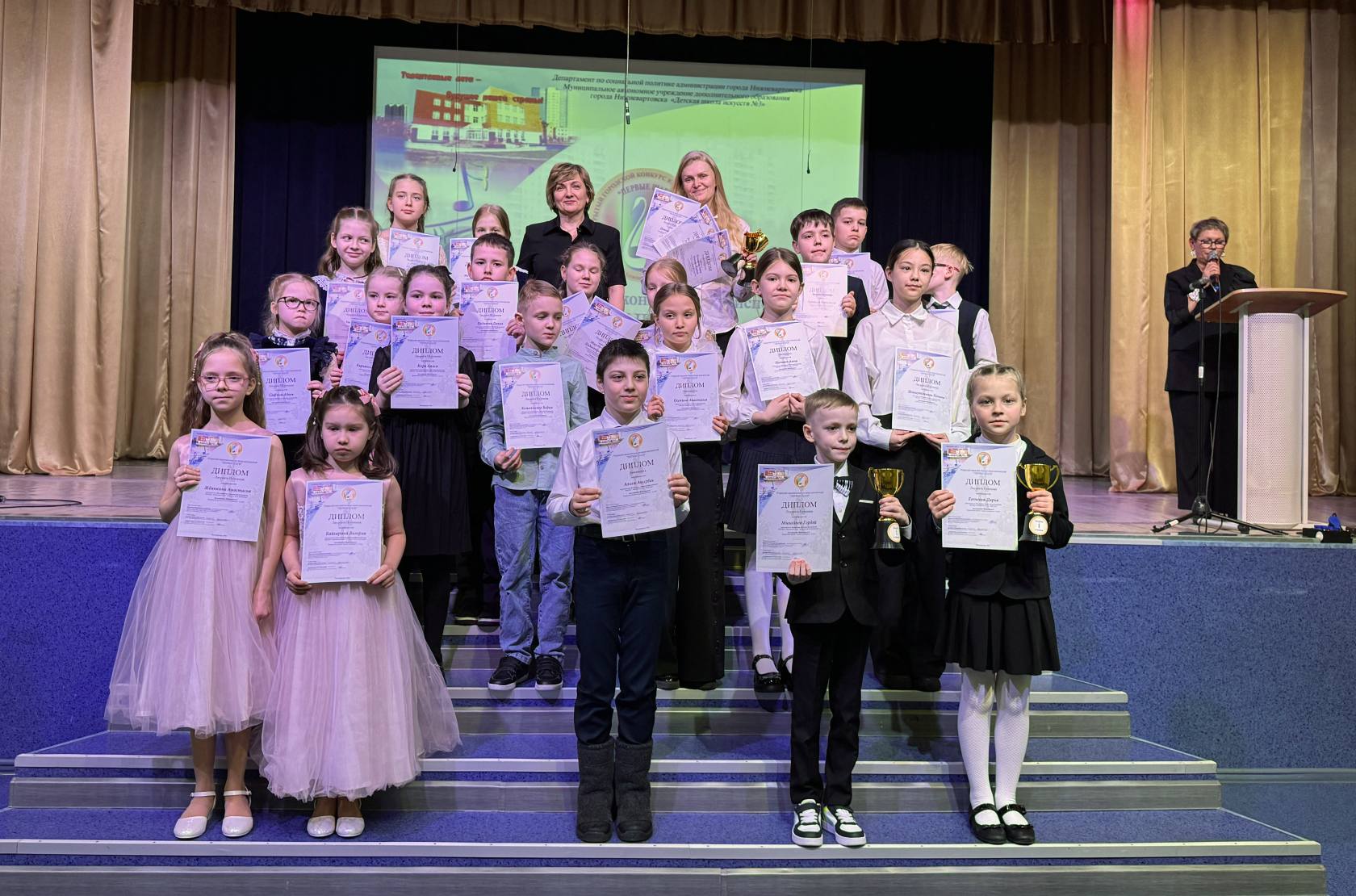 В рамках муниципальной программы "Развитие социальной сферы города Нижневартовска" с целью создание благоприятных условий для формирования духовных, нравственных качеств личности ребенка, способствующих самоопределению и самореализации в творчестве обучающихся учреждений дополнительного образования сферы культуры, подведомственных департаменту по социальной политике администрации города Нижневартовска 16 марта 2026 года состоялся Открытый городской конкурс юных исполнителей "Первые шаги" .