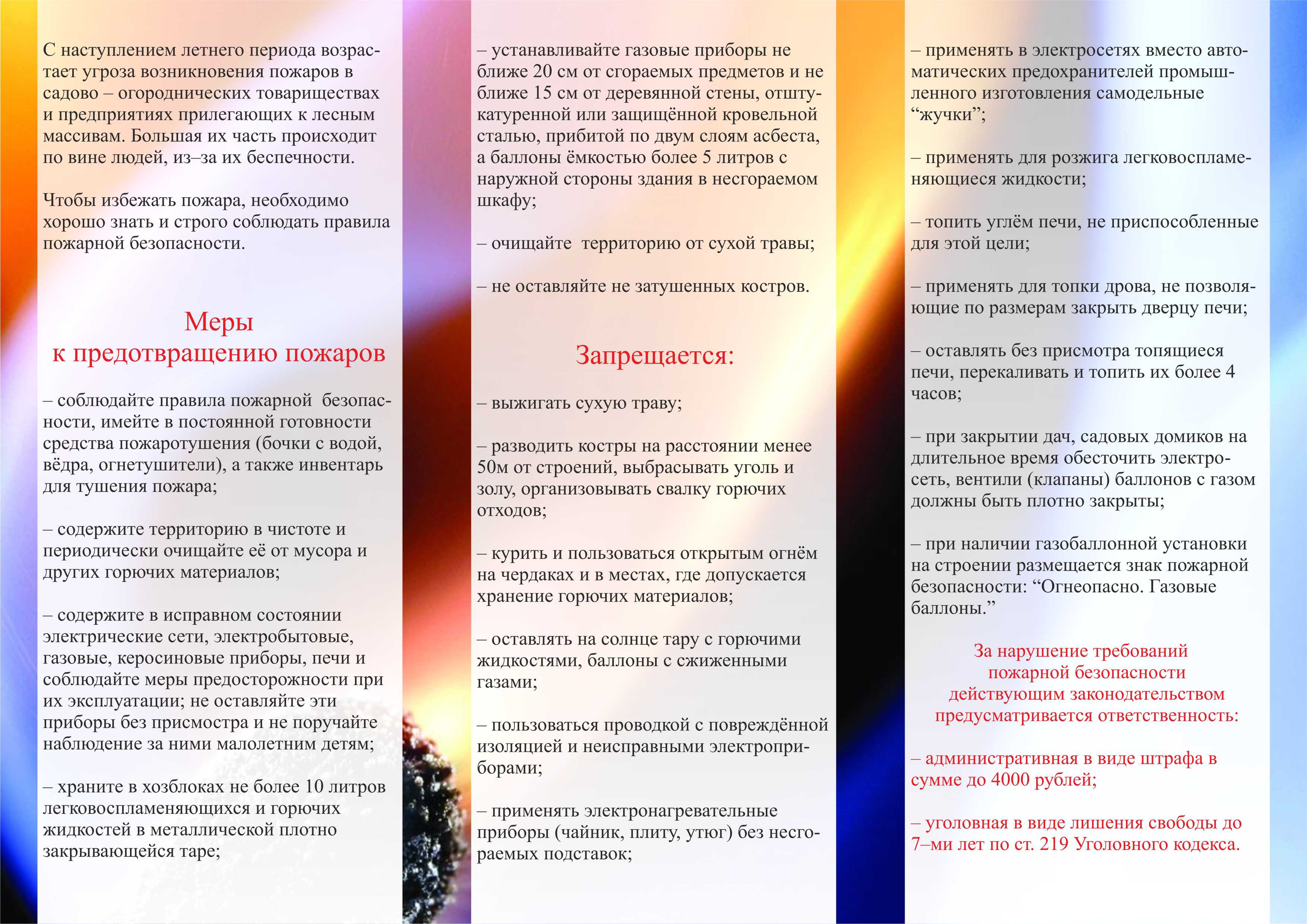 Памятка "Садоводам по противопожарной безопасности"