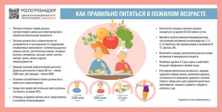 Роспотребнадзор напоминает, что питание является ведущим элементом для поддержки здоровья и продления жизни человека. Состояние здоровья в пожилом возрасте определяется многочисленными генетическими и внешними факторами, воздействующими на организм в течение всей жизни. Важно помнить, что к 60 годам организм человека претерпевает ряд существенных изменений: - уменьшается интенсивность процессов обмена веществ;