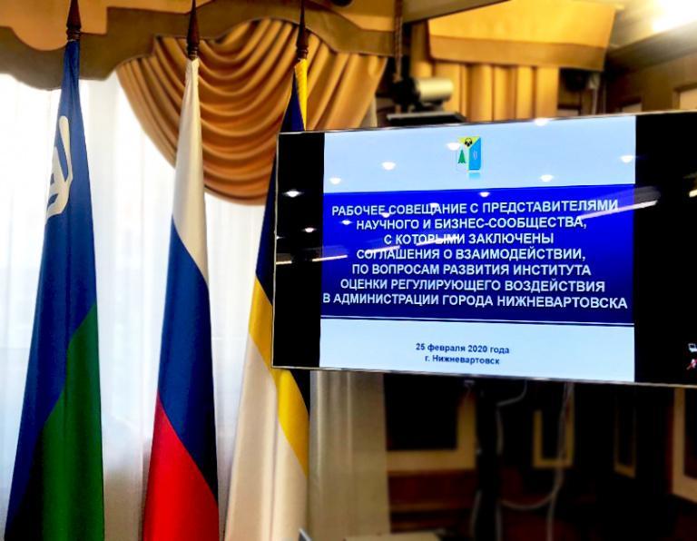 25.02.2020 состоялось рабочее совещание с представителями научного и бизнес-сообщества, с которыми заключены соглашения о взаимодействии, по вопросам развития института оценки регулирующего воздействия в администрации города Нижневартовска.