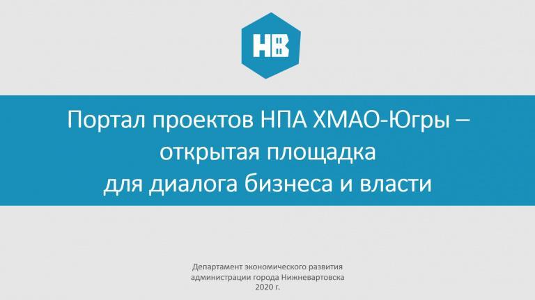 Во исполнение пункта 1.2 Протокола заседания Совета при Правительстве Ханты-Мансийского автономного округа-Югры по вопросам развития инвестиционной деятельности в Ханты-Мансийском автономном округе-Югре от 14.12.2020 №61 в рамках проведения ОРВ, экспертизы и ОФВ департаментом экономического развития администрации города направлены письма организациям, с которыми заключены соглашения о взаимодействии, с рекомендациями о принятии участия в публичном обсуждении проектов муниципальных НПА и действующих муниципальных НПА в электронном формате посредством Портала проектов НПА ХМАО-Югры (http://regulation.admhmao.ru), а также методические рекомендации по регистрации и работе с Порталом проектов НПА ХМАО-Югры, разработанные департаментом экономического развития администрации города.