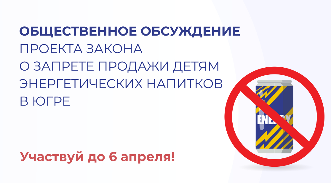 ПРИНЯТЬ УЧАСТИЕ: https://dialog.myopenugra.ru/pubdiscuss/obshchestvennoe-obsuzhdenie-proekta-zakona-o-zaprete-prodazhi-detyam-energeticheskikh-napitkov-v-yug/