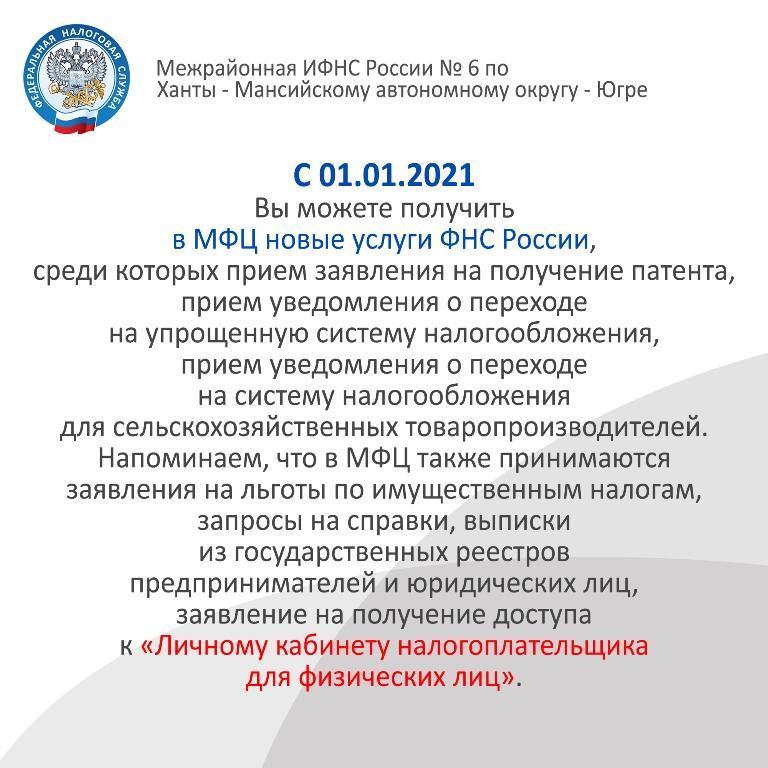 - "Услуги ФНС России, которые можно получить в МФЦ";