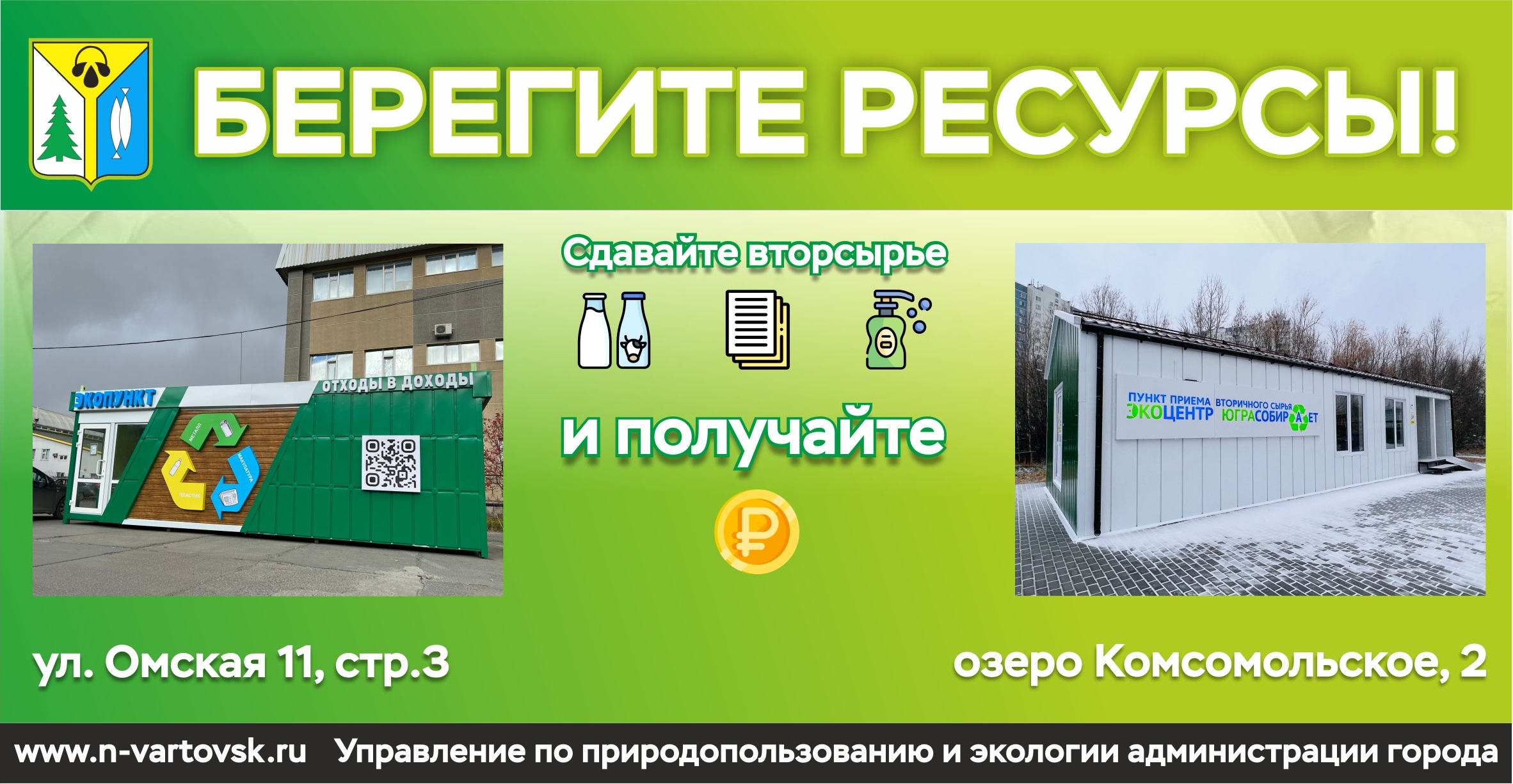 В Нижневартовске работает четыре пункта приема раздельно накопленных отходов от населения за вознаграждение.