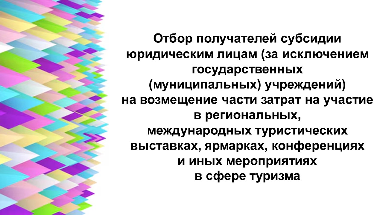 Отбор получателей субсидии юридическим лицам (за исключением государственных (муниципальных) учреждений) на возмещение части затрат на участие в региональных, международных туристических выставках, ярмарках, конференциях и иных мероприятиях в сфере туризма.