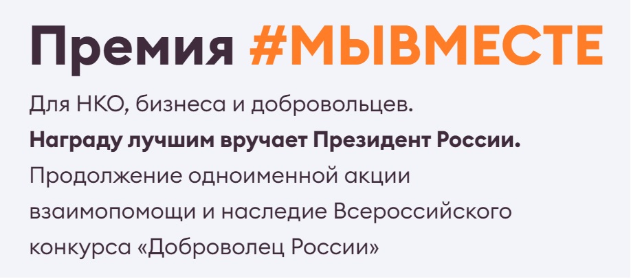 Заявки принимаются на сайте Премии #МЫВМЕСТЕ до 12 июня 2022 года включительно.