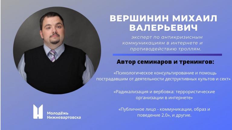 Приглашенный эксперт – Вершинин Михаил Валерьевич, социальный психолог, эксперт в области радикализации и вербовки террористическими организациями, антикризисных коммуникаций в интернете и противодействию троллям.