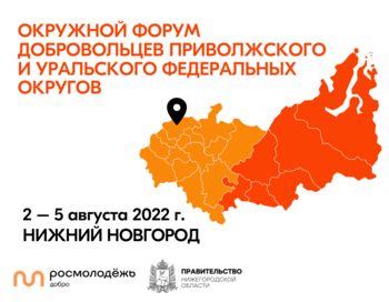 В период со 2 по 5 августа 2022 года в городе Нижнем Новгороде Нижегородской области запланировано проведение Окружного форума добровольцев Приволжского и Уральского федеральных округов, целями которого являются развитие добровольческой (волонтерской) деятельности, вовлечение граждан и создание условий для их саморазвития посредством участия в добровольческой (волонтерской) деятельности, формирование практических навыков у действующих лиц добровольческого (волонтерского) сообщества.