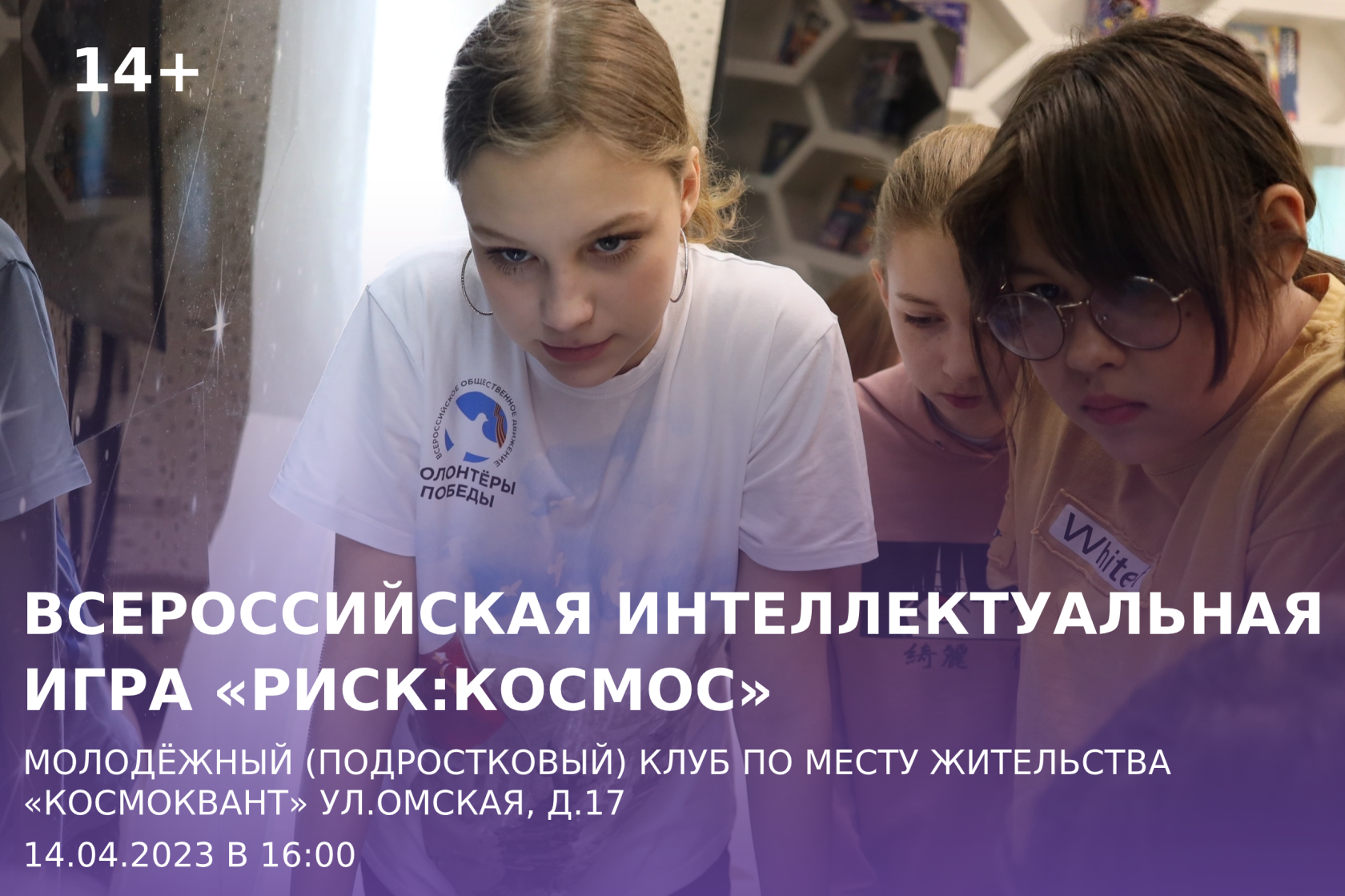 14 апреля 2023 года в 16:00 в подростковом (молодежном) клубе по месту жительства «Космоквант» (ул.Омская д.17) волонтеры Победы ресурсного центра «ДоброДом» проведут Всероссийскую интеллектуальную игру «РИСК:Космос».