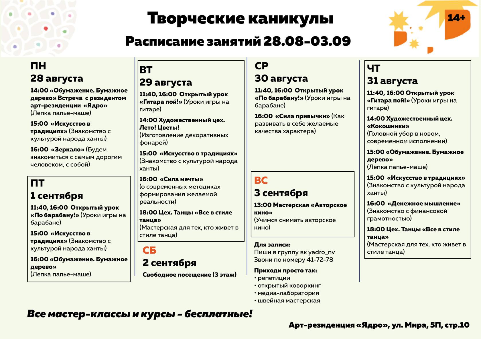 В арт-резиденции «Ядро» (ул. Мира, 5П, стр. 10) продолжаются «Творческие каникулы».