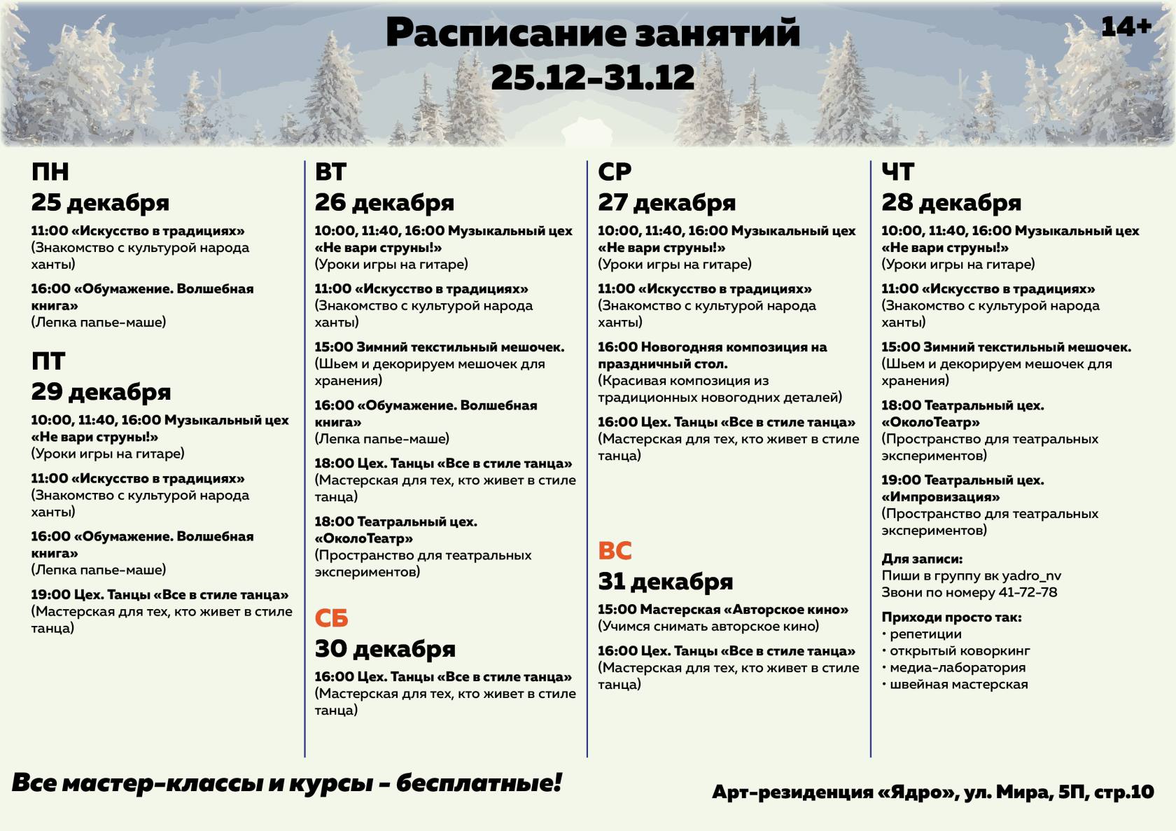 В период с 25 по 31 декабря на базе арт-резиденции «Ядро» пройдут творческие мероприятия:
