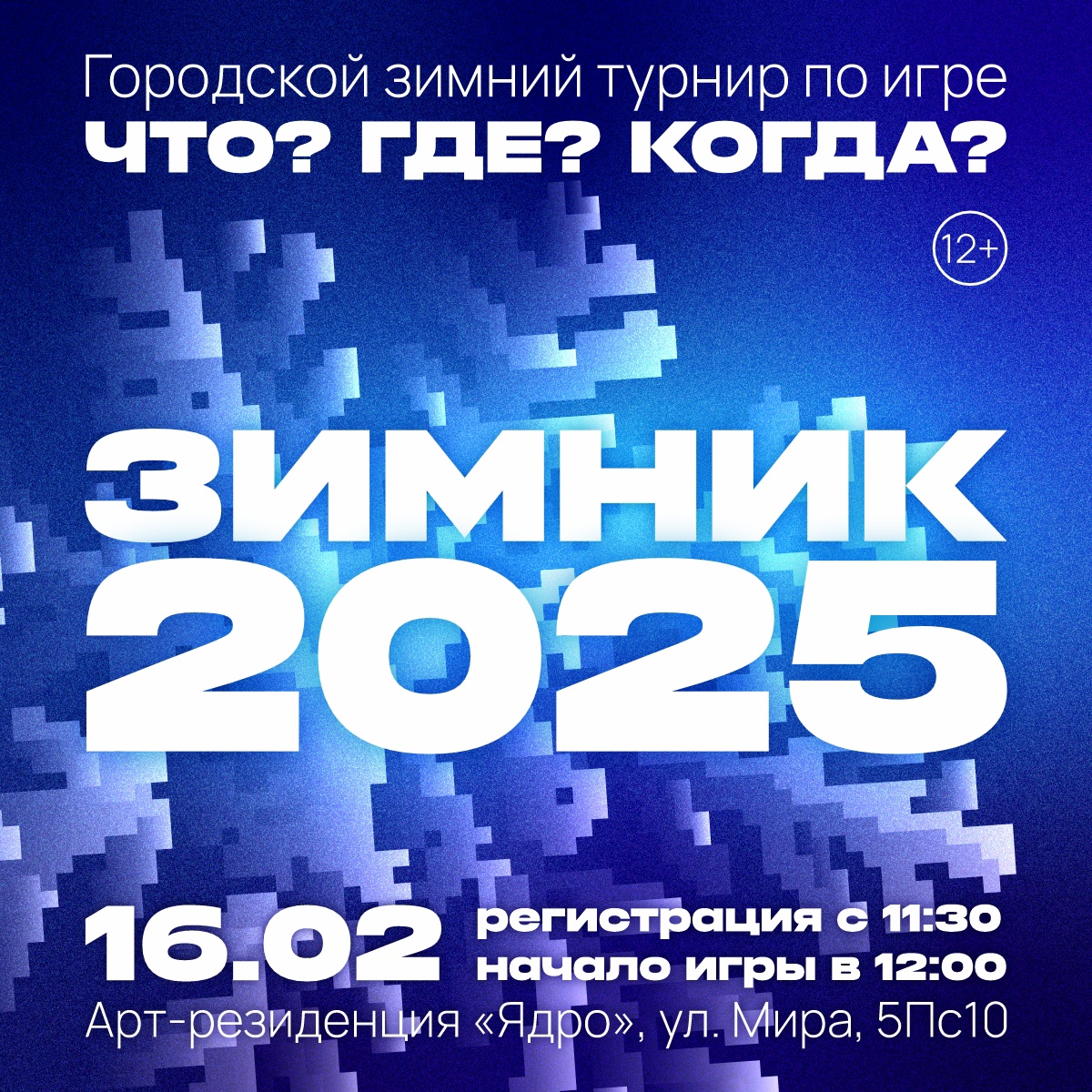 Нижневартовский интеллектуальный клуб приглашает на Зимний городской чемпионат по интеллектуальным играм - 2025, который пройдет 16 февраля в арт-резиденции "Ядро", где команды смогут проверить свои знания и эрудицию . В программе мероприятия: интеллектуальная игра "Что? Где? Когда?"; мультиигры и "Пентагон"