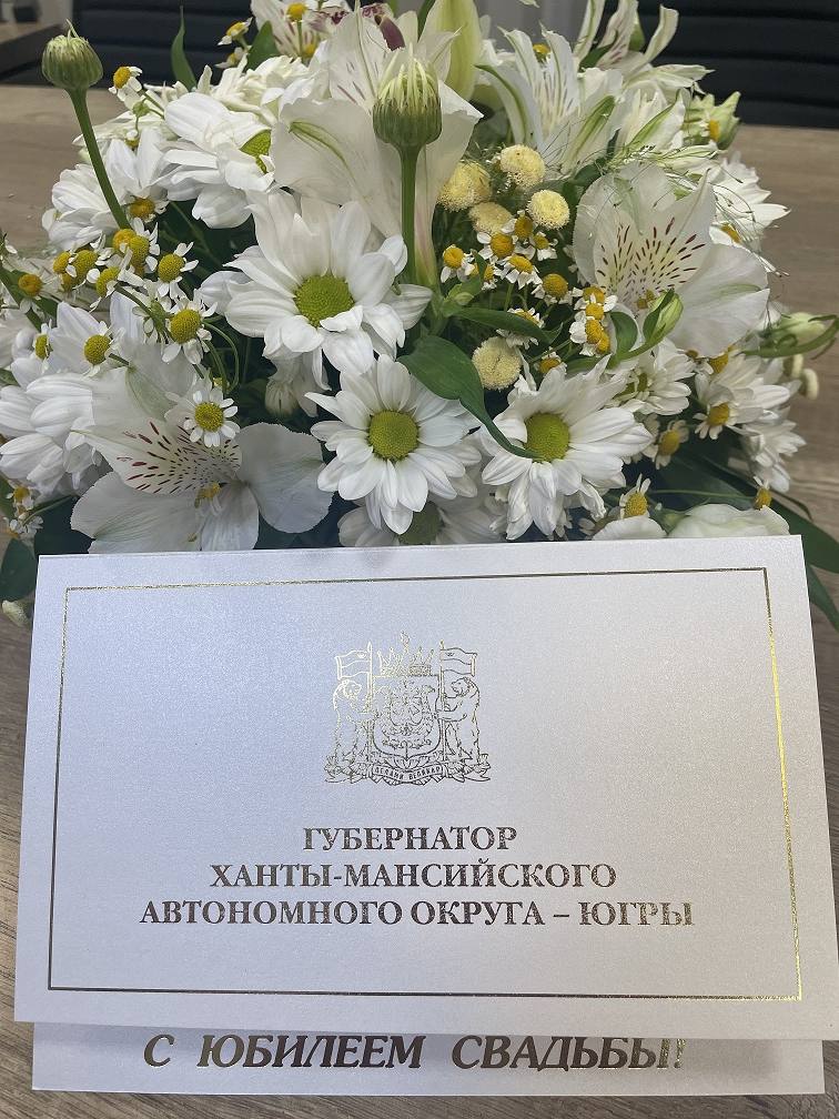 Поддержка семейных ценностей является приоритетным направлением государственной политики. Это выражается в принятии мер социальной поддержки для семей с детьми, выплате пособий по рождению ребенка, иных льготах и преимуществах. Поздравление с юбилеем семейной жизни (50, 55, 60, 65 и 70 лет) от имени Губернатора Ханты-Мансийского автономного округа – Югры носит заявительный характер. Для этого сами супруги, их родные и близкие могут заблаговременно сообщить о предстоящей юбилейной дате в управление записи актов гражданского состояния администрации города. Для подготовки ходатайства необходимо предоставить документы, удостоверяющие личность, свидетельство о заключении брака. Обязательными условиями являются также факты постоянного проживания обоих супругов на территории Югры не менее 15 лет, гражданство Российской Федерации, которые подтверждаются паспортами.