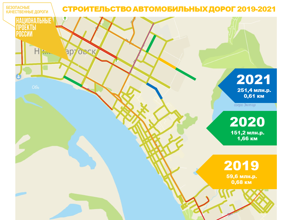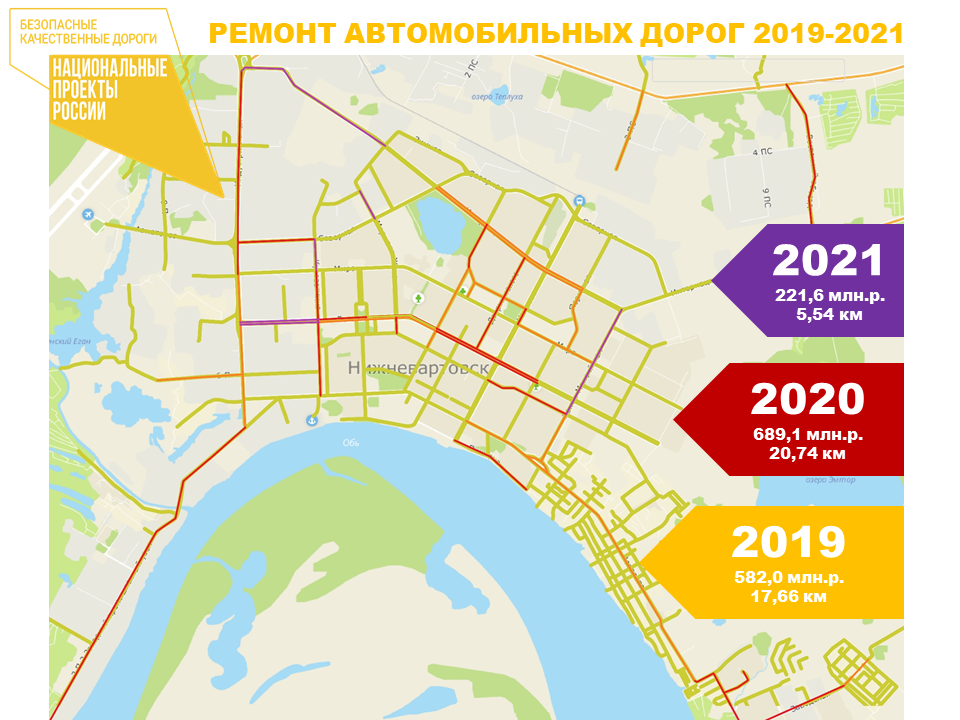 Реализация национального проекта «Безопасные качественные дороги» в городе Нижневартовске в 2019-2021 годах.
