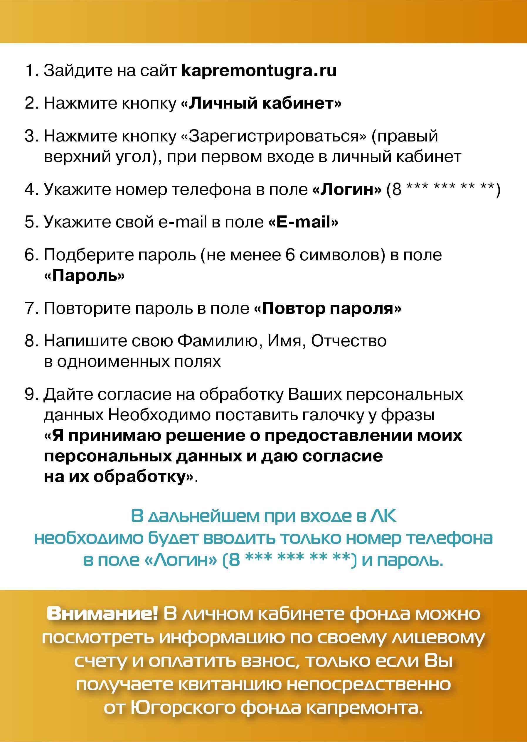 Личному кабинету посвящена отдельная листовка. В частности, в ней подробно рассказывается, как в кабинете регистрироваться. Еще одна листовка содержит информацию об ответственности собственников за неоплату взносов.