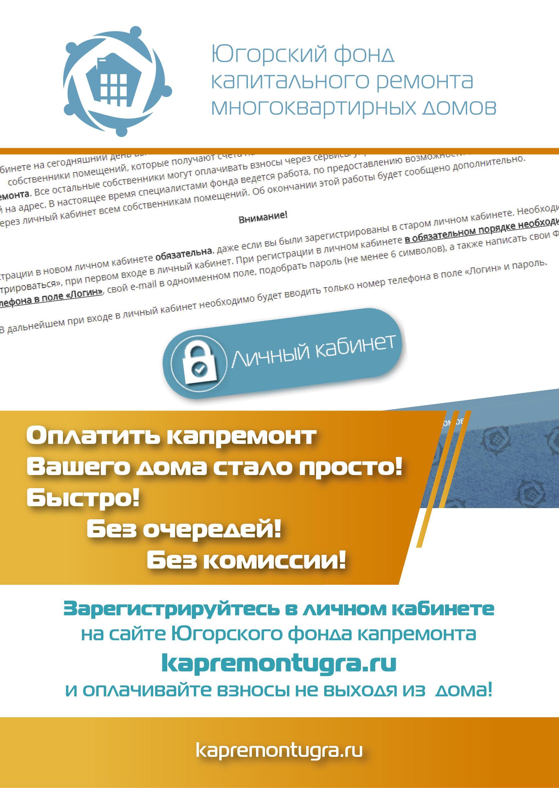 вида листовок о капремонте в автономном округе и в настоящее время приступает к их распространению в городах Югры. Листовки выпущены по разным темам. Так, одна из них касается способов оплаты взносов на капитальный ремонт. В листовке содержится информация о том, что в городах, где начисления производит сам фонд, оплатить взнос без комиссии можно при помощи сервисов банка «Открытие», при помощи личного кабинета на официальном сайте фонда и через других платежных агентов фонда.