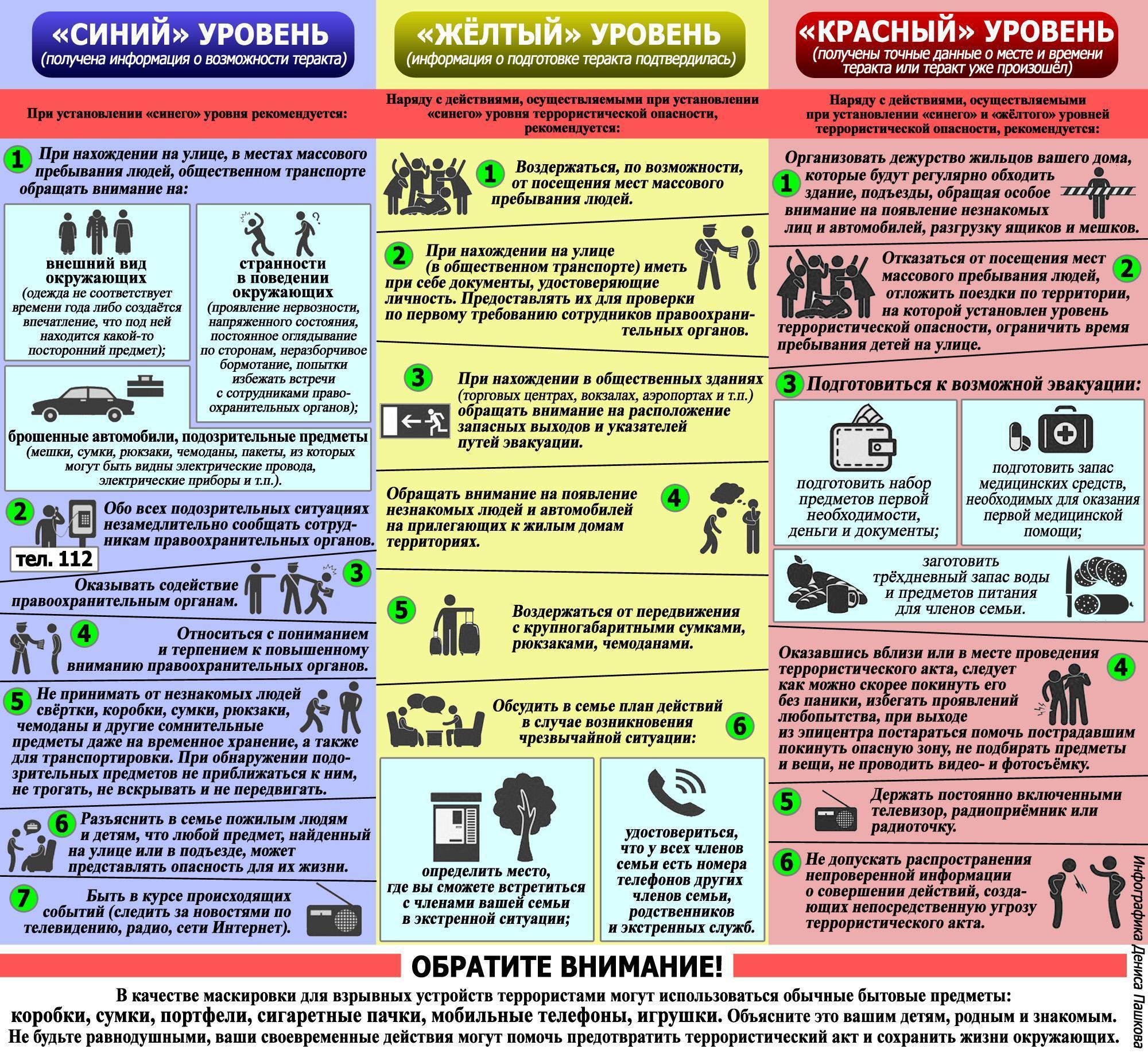 Актуальная информация о мерах безопасности размещена на сайте органов местного самоуправления Нижневартовска в рубрике «Безопасный город». Здесь также размещена видеоинструкция по действиям населения при введении уровней террористической опасности.