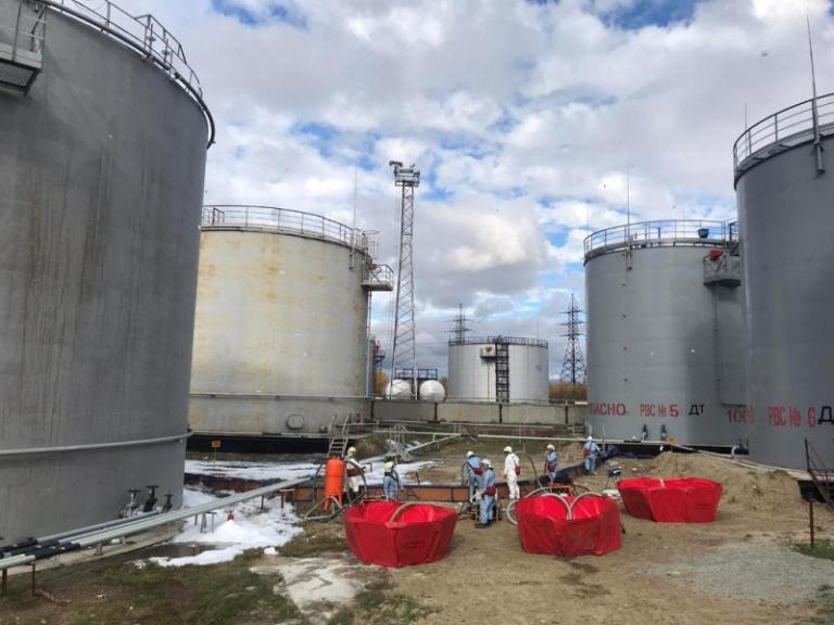 До прибытия экстренных служб причину и масштабы происшествия оценили специалисты предприятия ООО «Доркомплект» и провели первоочередные мероприятия по стабилизации аварийной обстановки: остановили прием и отпуск нефтепродуктов, ограничили зоны разлива, приступили к откачке нефтепродуктов из поврежденного резервуара и исключили источники воспламенения.