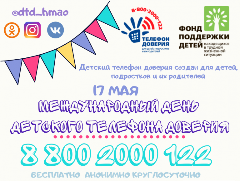 В рамках Международного дня детского телефона доверия, который ежегодно отмечается 17 мая, в Югре пройдут мероприятия, направленные на укрепление института семьи и поддержку детей, находящихся в трудной жизненной ситуации. Формат мероприятий – онлайн/офлайн-игры для несовершеннолетних и их родителей (законных представителей), муниципальные родительские онлайн-собрания.