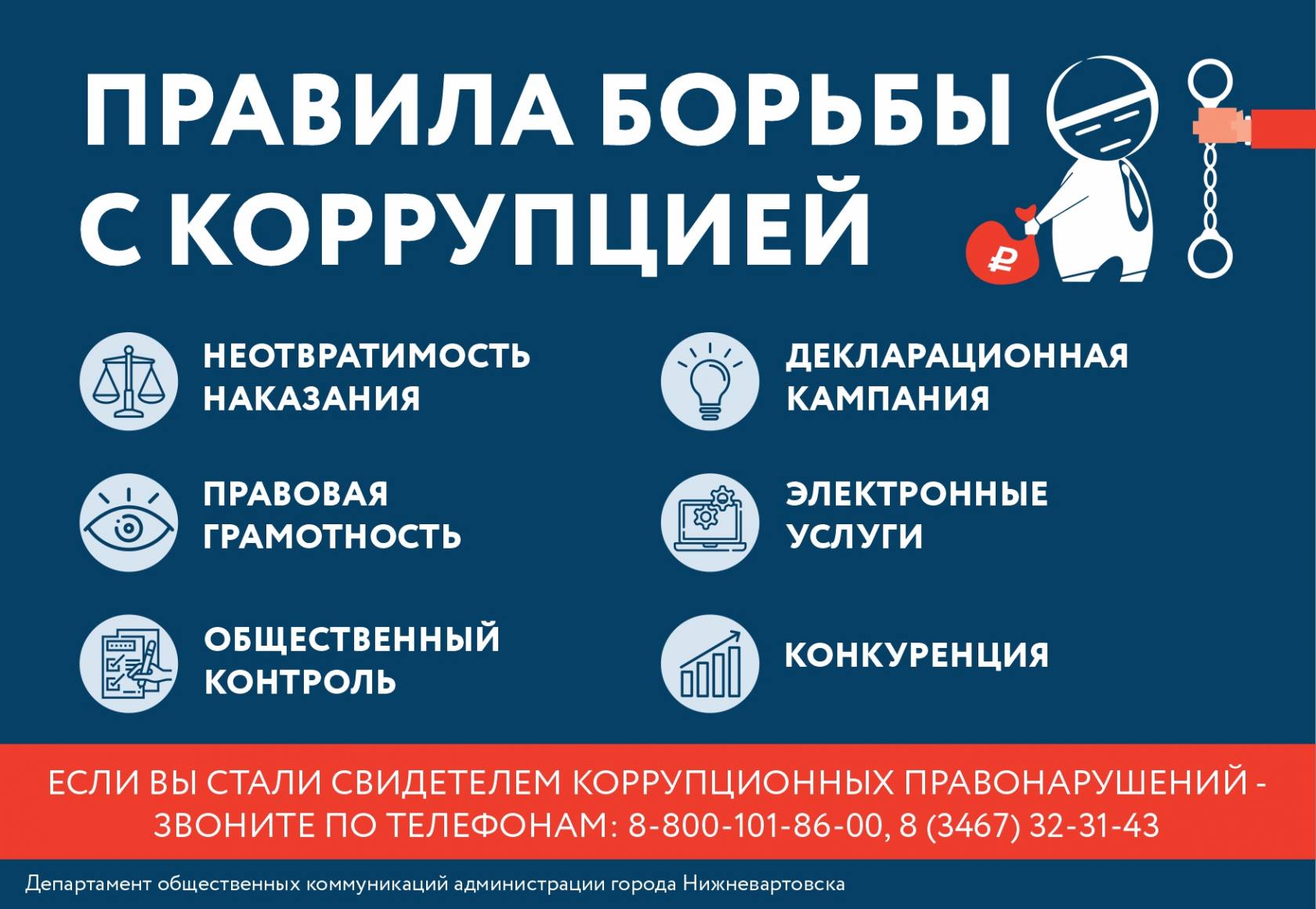 На официальном сайте ОМС города Нижневартовска в разделе «Безопасный город», в рубрике «Правила безопасности» размещена актуальная информация о действиях граждан по предупреждению коррупции.