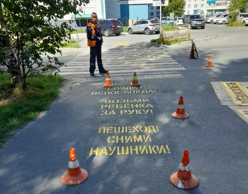 «Пешеход! Сними наушники!», «Возьми ребенка за руку!», «Сойди с велосипеда!». Такая предупреждающая разметка появилась возле пешеходных переходов на улицах Нижневартовска. Надписи призваны обратить внимание вартовчан на правила безопасного перехода проезжих частей. Данная работа проводится по поручению главы города Дмитрия Кощенко.