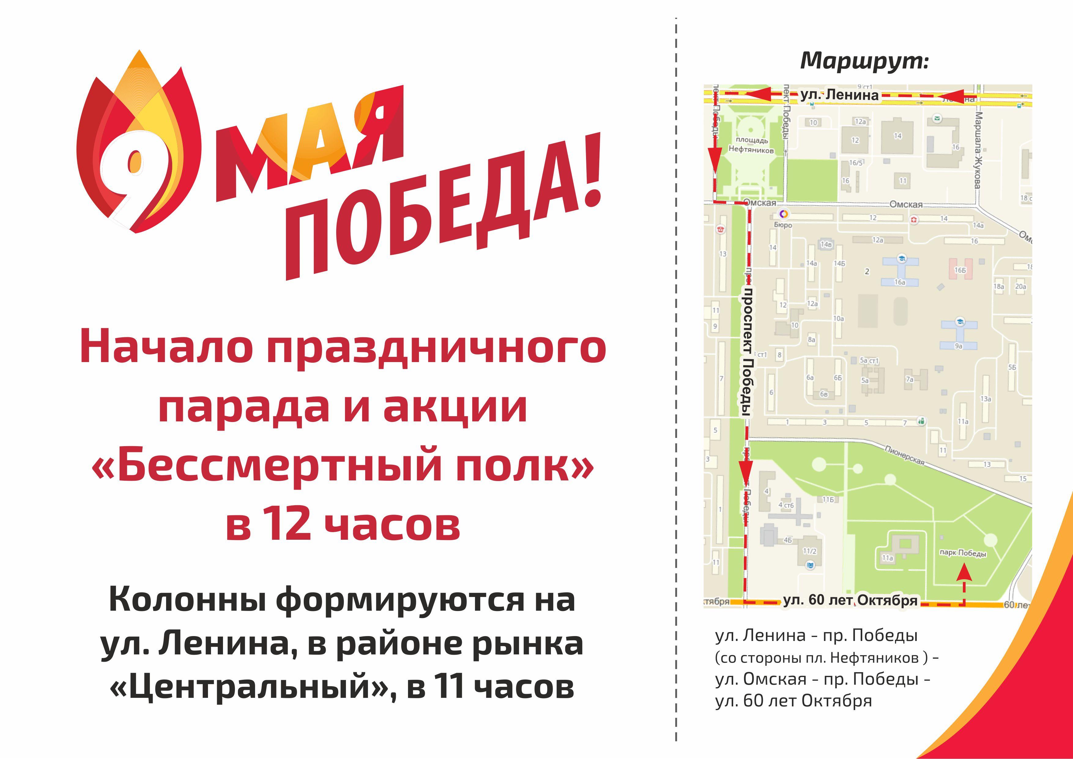 улица Омская (от улицы Менделеева до улицы Нефтяников) - для проведения праздничного парада и акции «Бессмертный полк» | |