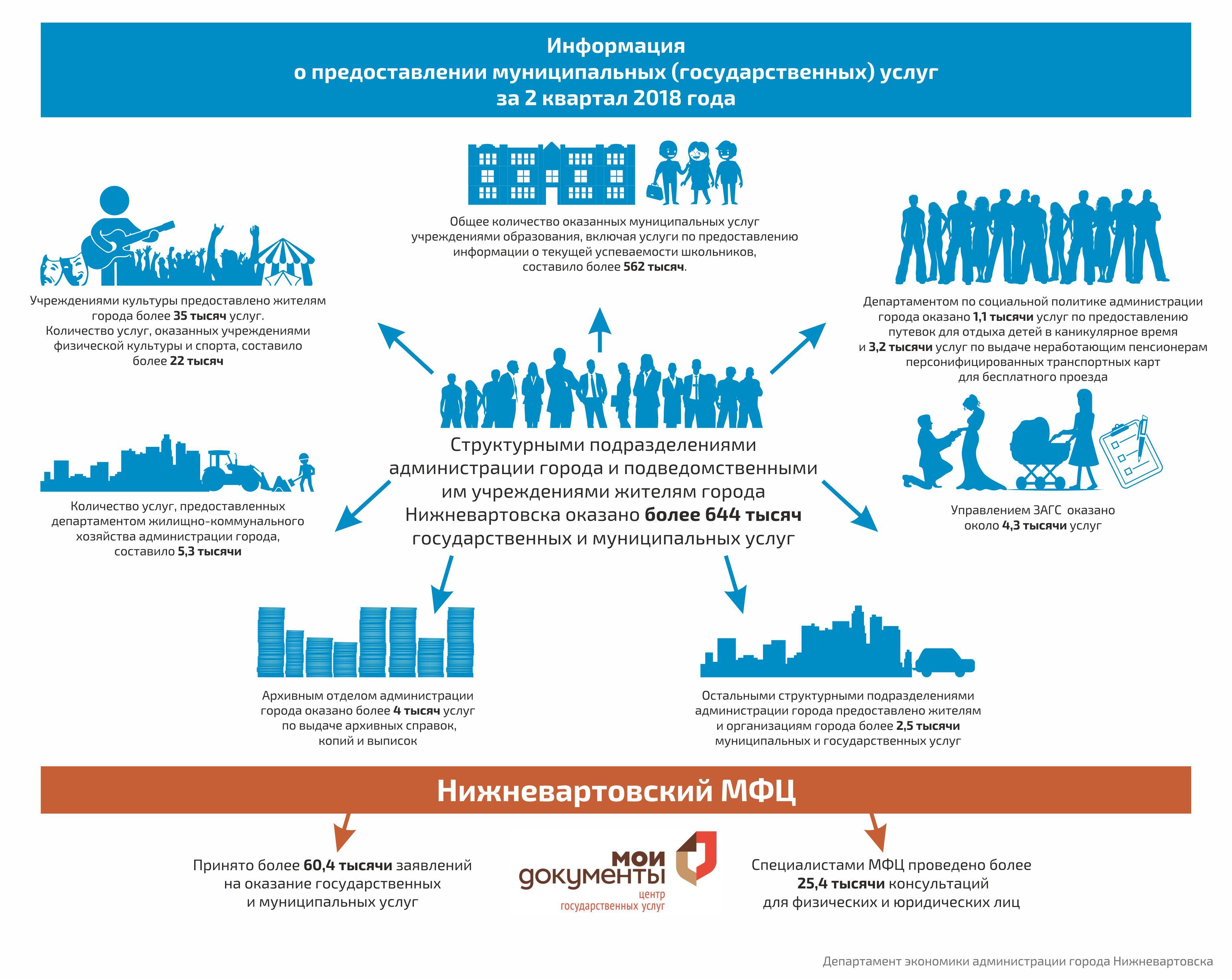 Подводя итоги второго квартала 2018 года, можно отметить положительную динамику обращений жителей Нижневартовска за предоставлением государственных и муниципальных услуг по сравнению с аналогичным периодом прошлого года.