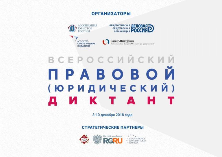 Проект призван исследовать уровень правовой грамотности российских граждан. Проверить свои знания сможет каждый житель страны старше 14 лет. Организаторы диктанта: Ассоциация юристов России, «Деловая Россия», Агентство стратегических инициатив и уполномоченный при Президенте РФ по защите прав предпринимателей.
