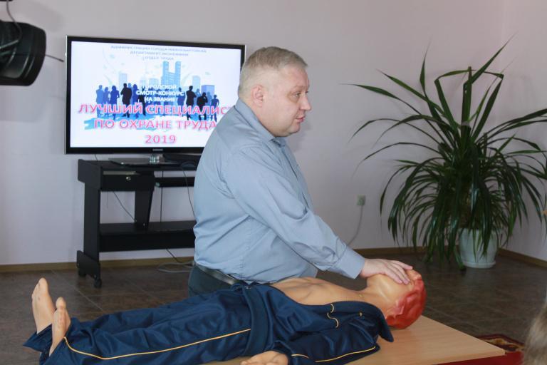 17 апреля 2019 года прошли первые два этапа смотра-конкурса. Первый этап проводился в форме тестирования на знание теоретических вопросов, связанных с условиями и охраной труда, в том числе требований законов и иных нормативных правовых актов. Второй этап включал выполнение практического задания по отработке приемов реанимации на роботе-тренажере.