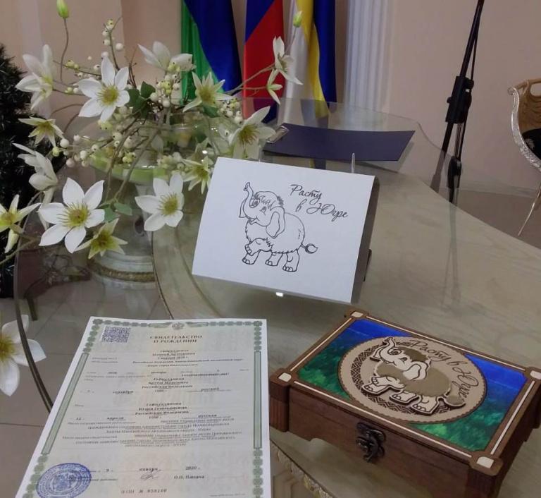 В управлении ЗАГС администрации города Нижневартовска начали вручение подарков «Расту в Югре» родителям новорожденных детей, появившихся на свет в первые дни 2020 года.