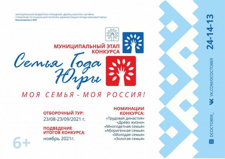 В Нижневартовске с 23 августа по 23 сентября 2021 года пройдет муниципальный этап окружного конкурса «Семья года Югры».