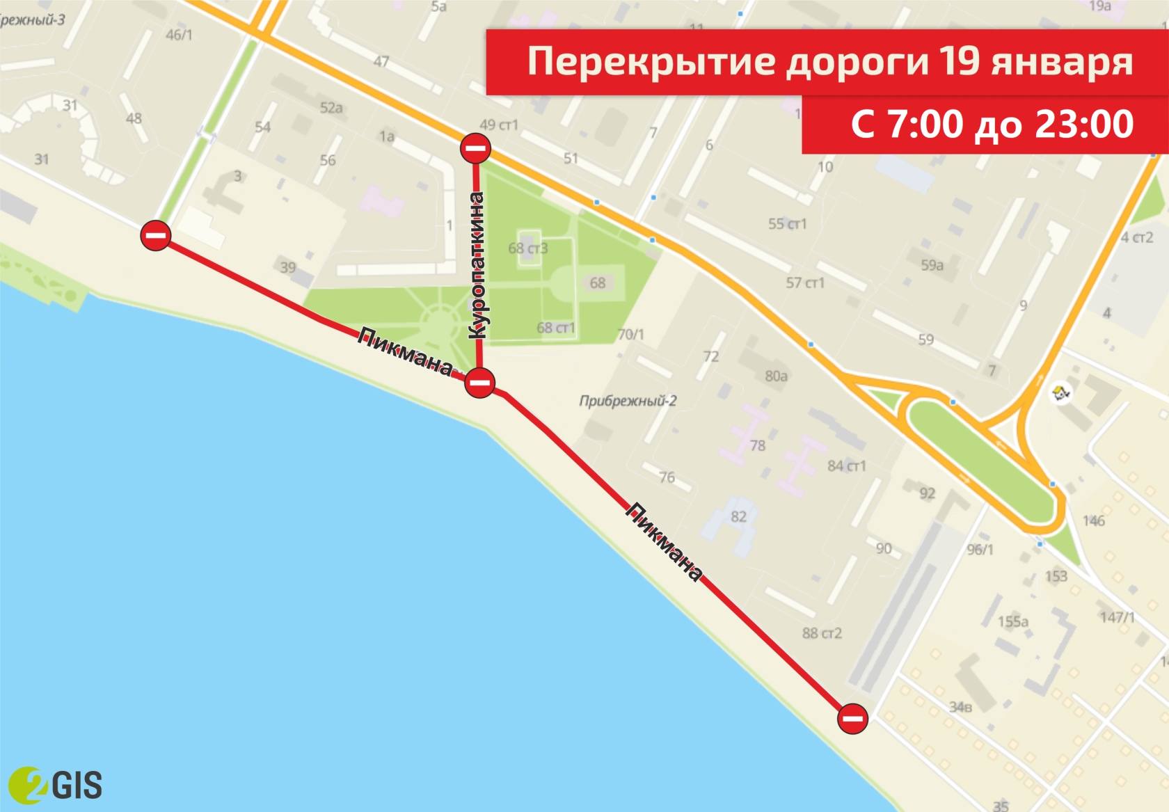 Для обеспечения безопасности граждан 19 января, в день проведения мероприятий, посвященных празднованию Крещения Господня, с 7 до 23 часов будут перекрыты для движения автотранспорта следующие участки дорог: