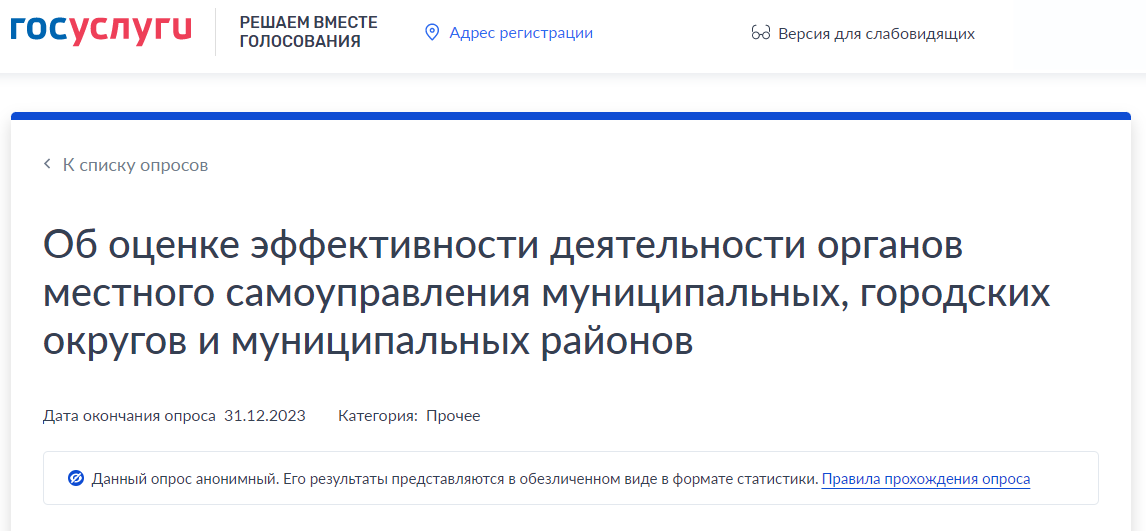 Исследование проходит с использованием федеральной государственной информационной системы «Единая система идентификации и аутентификации (ЕСИА). Для участия в опросе необходимо войти в личный кабинет на Портале государственных услуг Российской Федерации через ЕСИА. Необходимо нажать кнопку «Авторизоваться», указать имя и фамилию, а также подтвердить данные по номеру мобильного телефона и по электронной почте. Опрос анонимный.