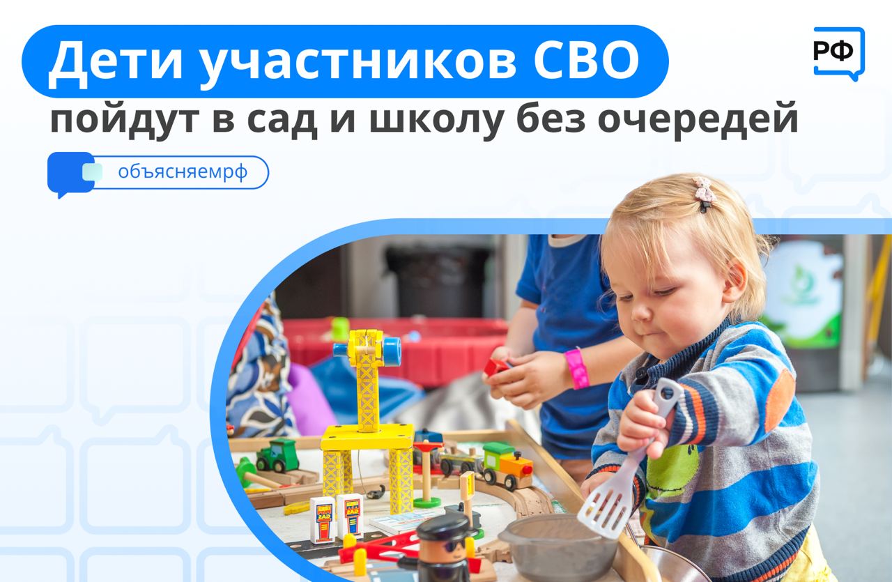 Детей добровольцев и военнослужащих зачисляют в сады, школы и оздоровительные лагеря одними из первых. Такой закон, подписанный Президентом России Владимиром Путиным, начал действовать с 24 июня 2023 года (ФЗ-№281).