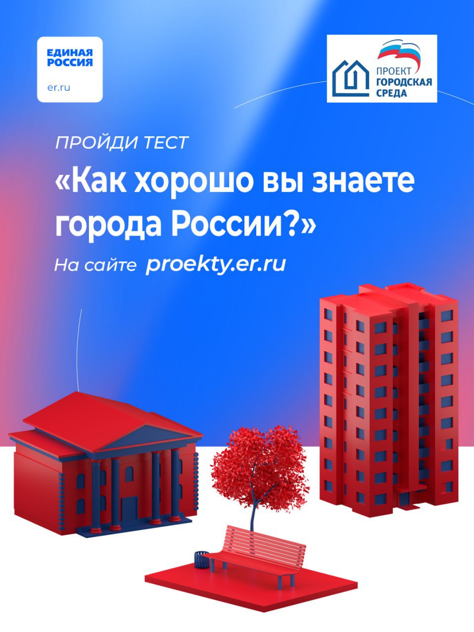Проектом «Городская среда», инициированным партией «Единая Россия», предусмотрено проведение теста «Как хорошо вы знаете города России?».